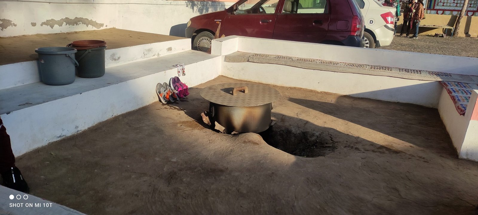 What grounds the experience are the lives that edge this expanse — villages built low and close to the earth, painted walls and thatched roofs, routines shaped around heat, water, and work. A cooking hearth sits recessed into the floor, functional and unremarkable, carrying the quiet intelligence of survival. After the openness of the Rann, these interiors feel deliberate, contained, human. The salt may dominate the landscape, but it is these small, grounded spaces that remind you how people have learned to live alongside a place that gives very little back.